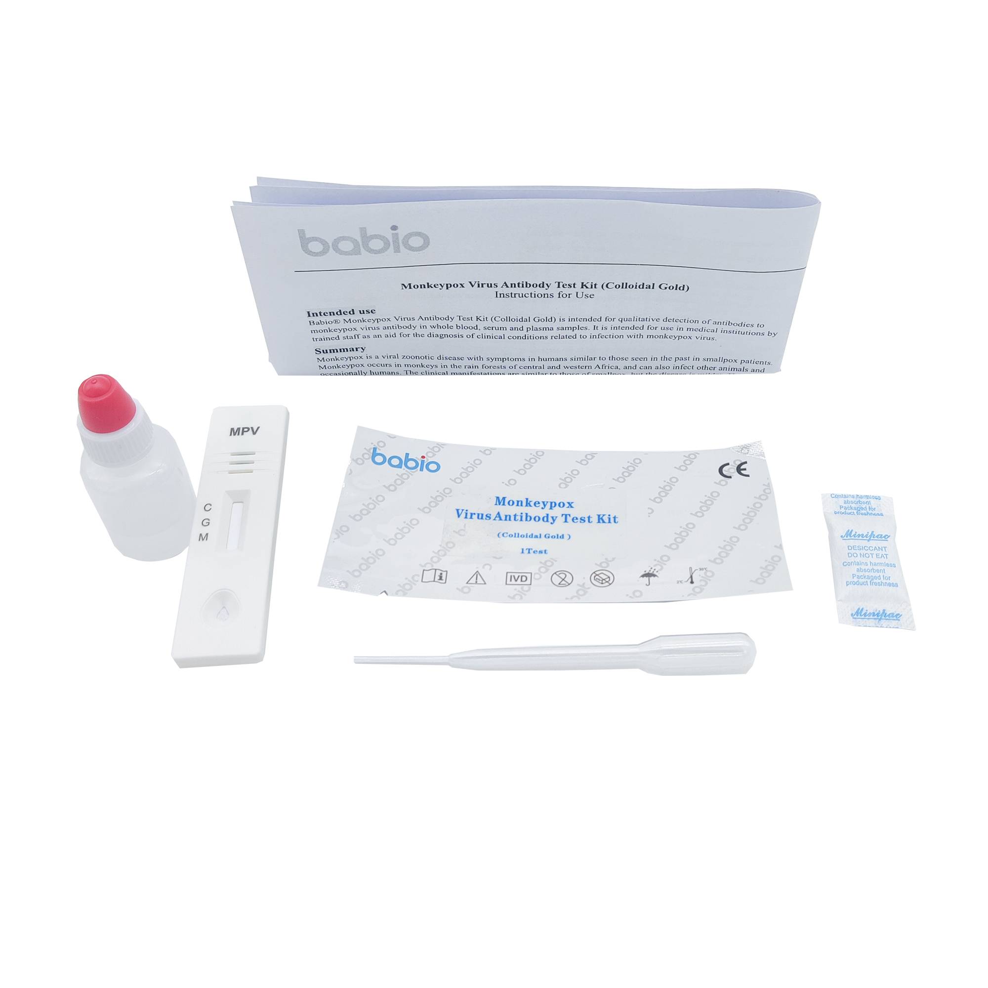 Το κιτ δοκιμής αντισωμάτων του ιού της ευλογιάς των πιθήκων Babio® (Colloidal Gold) προορίζεται για την ποιοτική ανίχνευση αντισωμάτων έναντι των αντισωμάτων του ιού της ευλογιάς των πιθήκων σε δείγματα πλήρους αίματος, ορού και πλάσματος. Προορίζεται για χρήση σε ιατρικά ιδρύματα από εκπαιδευμένο προσωπικό ως βοήθημα για τη διάγνωση κλινικών καταστάσεων που σχετίζονται με μόλυνση από τον ιό της ευλογιάς των πιθήκων.